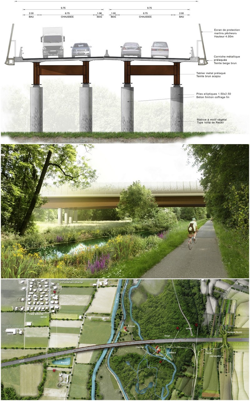 L’équipe Lavigne Chéron Architectes mandataire et JDM Paysage (Benoit Martineau paysagiste) remportent le concours lancé pour Vinci pour la conception paysagère et architecturale du viaduc de la Bruche dans la cadre du contournement Ouest de Strasbourg.